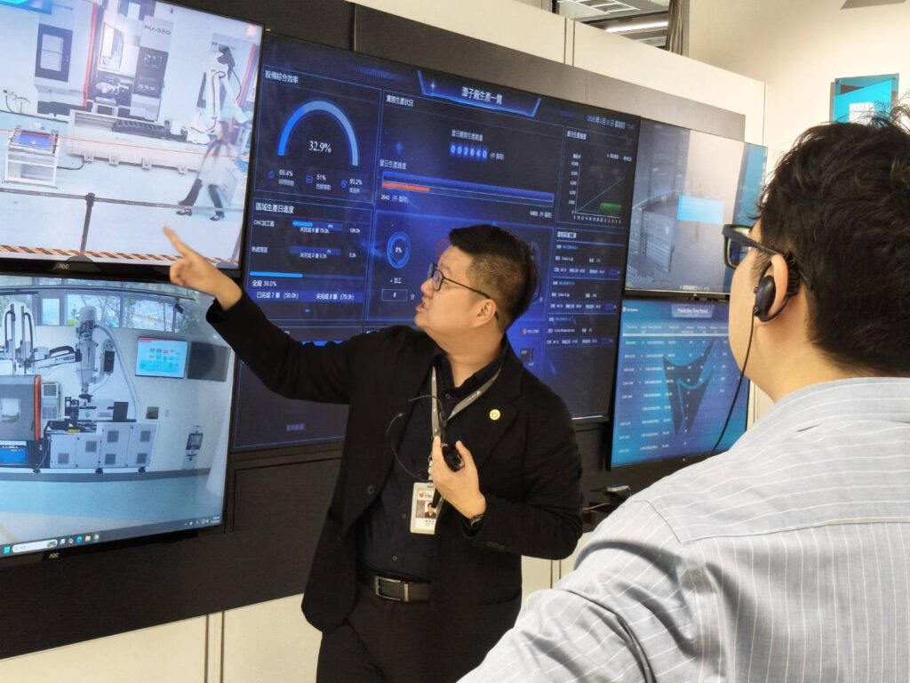 為進一步驗證轉型效益,參訪貴賓隨後移師鼎捷集團標竿客戶「武漢機械」中科二林廠。面對全球製造業缺工難題,武漢機械二林廠已落實高度自動化佈局,全廠導入機械手臂與智慧物流系統,機台聯網率(OEE)超過 90%。透過鼎華智能 MES 系統的精準報工與全製程追溯,成功打造透明、高效的智慧工廠環境;該實戰成果獲得大馬產業代表高度評價,被視為馬來西亞離散製造業升級的最佳典範。
